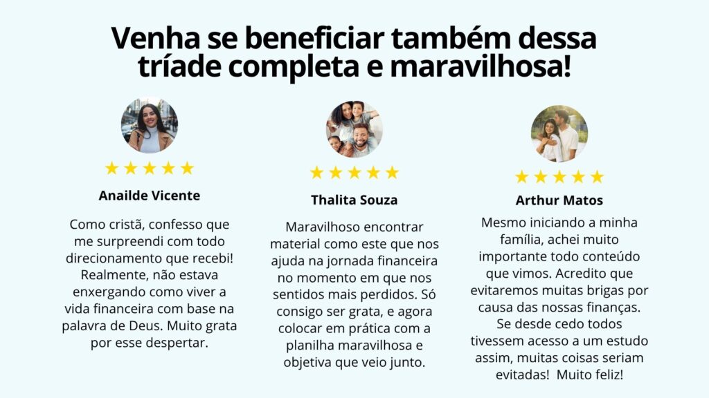 Três guias em formato digital, que unem os princípios da Palavra de Deus à organização financeira —